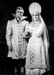 В том же 1984 году последовала новая встреча с творчеством Римского-Корсакова — роль Шемаханской царицы в опере «Золотой петушок». Голос — основное богатство певца, а тембр — главная драгоценность, та специфическая обертоновая аура, по которой мы сразу на слух отличаем исполнителя. Качество тембра не только зеркало души его обладателя, но и души образа. Любопытно, как проявляется оно в партии Шемаханской царицы, казалось бы, такой далекой от доминантных черт голоса Узунян, как лиричность, благородная теплота тона. Любой певческий голос в силу своего темброво-акустического звучания имеет определенное амплуа. Колоратурные сопрано нередко отличаются холодновато-ипструментальпым тембром, они суховаты, даже колючи, зато отлично приспособлены для виртуозных пассажей, трелей, в чем соперничают с техничной флейтой. Этот, по словам Римского-Корсакова,«фантастический девичий образ, поющий и исчезающий», часто озвучивают в сказочной манере со «стеклянной» окраской вокала. Благодаря «очеловечиванию» невероятно сложного интонационного материала, блестящей колоратуры партии, которая здесь является скорее весомым слагаемым, чем только украшением, партия Шемаханской царицы интерпретируется певицей мягче, одушевленнее, что ли. Вместо злой иронии — снисходительность, лукавость заменила ядовитую насмешку, своим танцем она не искушает, а очаровывает. Едва заметная лирическая «подсветка» превращает зловеще-коварную восточную владычицу в прелестную восточную красавицу, напоминающую другую сказочную героиню Римского-Корсакова — Шехеразаду. Шемаханская царипа-Узунян не клеймит позором Додона, но всем своим симпатичным, искусно вылепленным обликом выносит приговор тупому додонову царству.